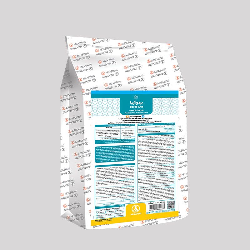 Бордо Арияшими является смесью медного купороса(CuSO4) и гашеной извести (Ca(OH)2). Это эффективный фунгицид и бактерицид, который использовался для борьбы с болезнями фруктовых и ореховых деревьев, плодов винограда и декоративных растений. Эти природные минералы при смешивании в правильном порядке обеспечивают длительную защиту растений от болезней. Он распыляется на растения как профилактическое средство для борьбы с бактериальным ожогом на грушах и яблоках, курчавостью листьев и дырчатой пятнистостью на персиках и нектаринах, завяданием грецкого ореха, ложномучнистой росы и ... Его способ действия неэффективен после укрепления грибка. Способность Бордо Арияшими прилипать к растениям в дождливую погоду делает его отличным выбором для зимнего фунгицида. Применение Бордо после выхода деревьев из покоя обычно не рекомендуется, поскольку оно может повредить листья.
