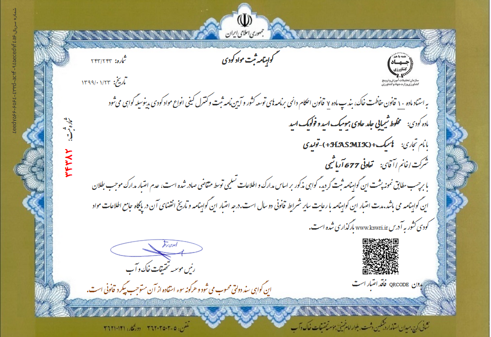 کود حاوی هیومیک اسید و اسید فولویک همراه با عناصر ریزمغذی