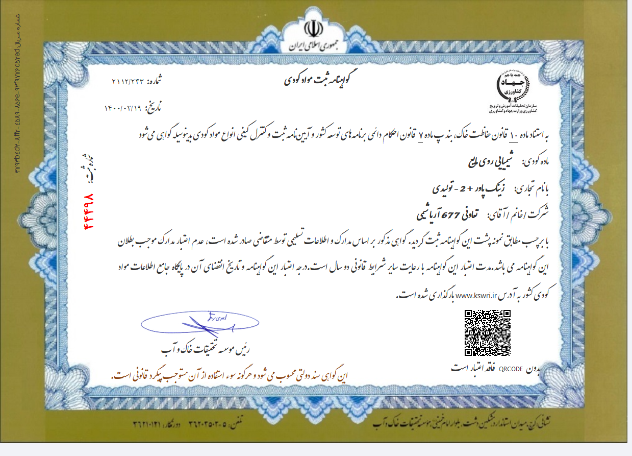 کودی برای تامین ریز مغذی “روی” می باشد که می تواند موجب افزایش رشد رویشی شود. کمبود روی یکی از شایع ترین کمبودهای ریزمغذی ها در خاک های ایران است. مزیت مهم این کود قابلیت اختلاط آن با همه سموم و همچنین مصرف آن به صورت محلول پاشی می باشد .