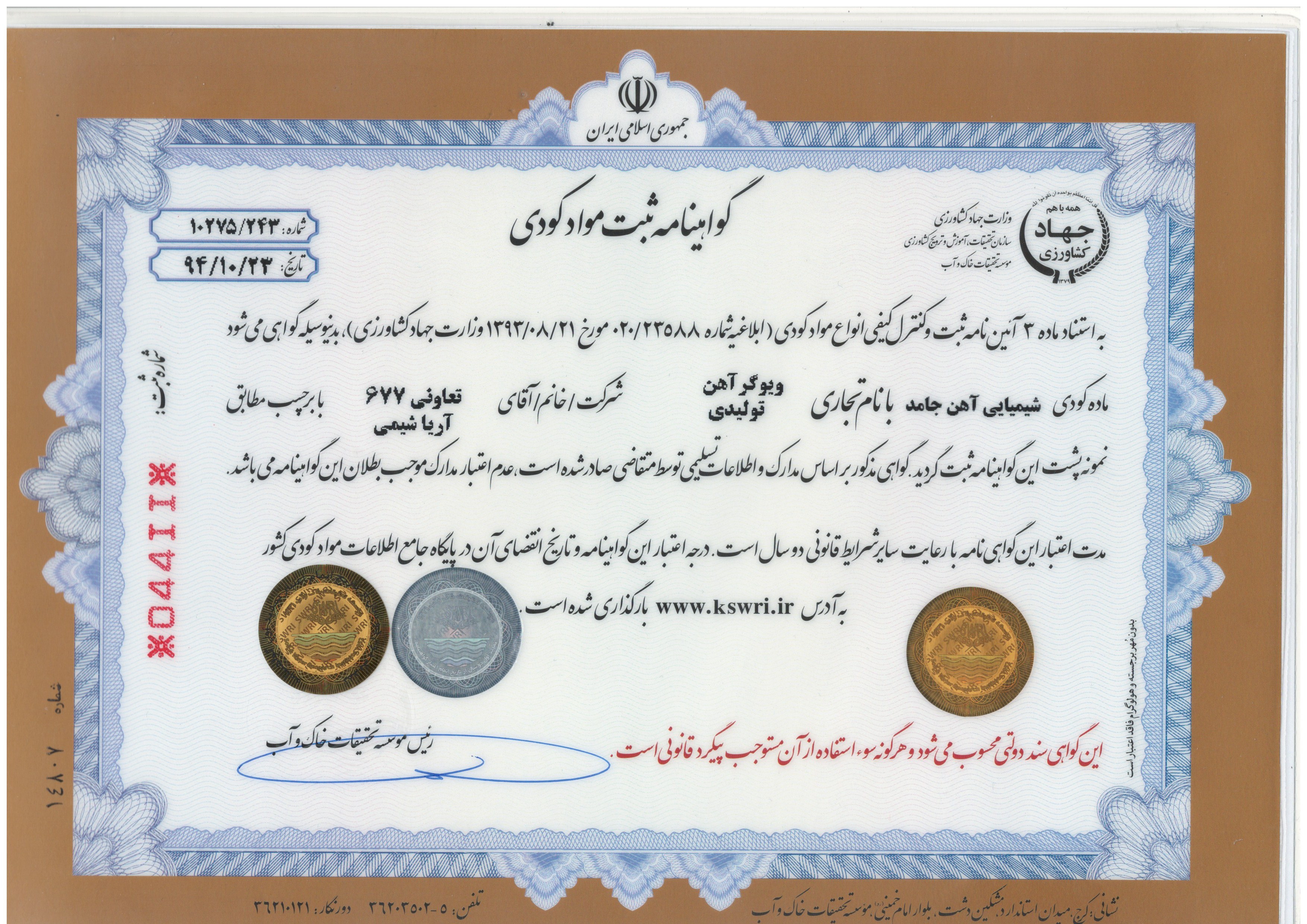 در صورت بروز علائم کمبود آهن و تکرار بسته به نیاز گیاه هر 14-10 روز یکبار تا رفع کامل علائم کمبود